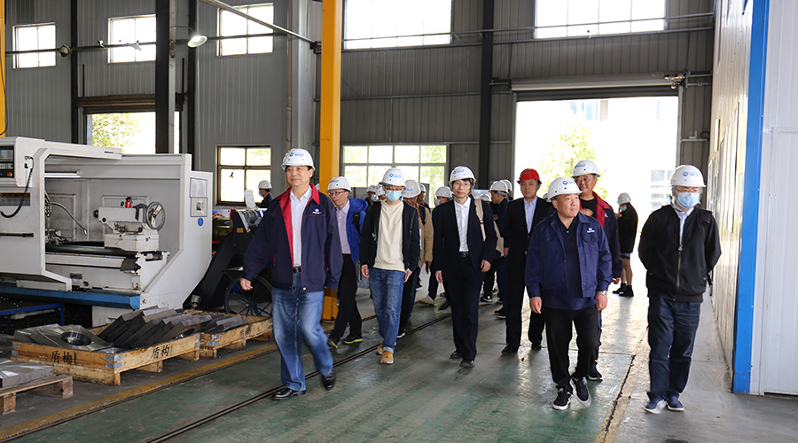 銅都流體董事長(zhǎng)楊成陪同與會(huì)專家參觀工廠