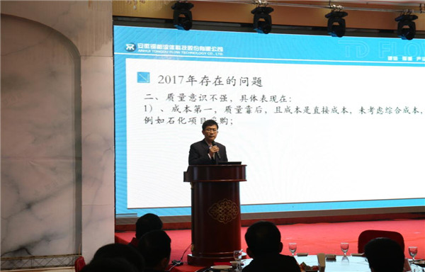 年會(huì)上,公司副總經(jīng)理?xiàng)盍杞茏?017年度營銷工作報(bào)告, 公司總經(jīng)理趙小虎對(duì)2017年度工作作了全面總結(jié),充分肯定了公司近三年來各項(xiàng)核心指標(biāo)均實(shí)現(xiàn)兩位數(shù)增長的成績,指出了目前管理工作中存在的不足,提出了具體改進(jìn)措施,并明確了2018年核心經(jīng)營目標(biāo)。公司董事長楊成結(jié)合行業(yè)及公司當(dāng)前發(fā)展趨勢,從公司長遠(yuǎn)發(fā)展、做大做強(qiáng)戰(zhàn)略高度,深刻分析了銅都流體面臨嚴(yán)峻的挑戰(zhàn)形勢,并指明企業(yè)的發(fā)展策略以及發(fā)展措施,并號(hào)召全體員工不忘初心,繼續(xù)發(fā)力,使銅都流體新年再上新臺(tái)階。