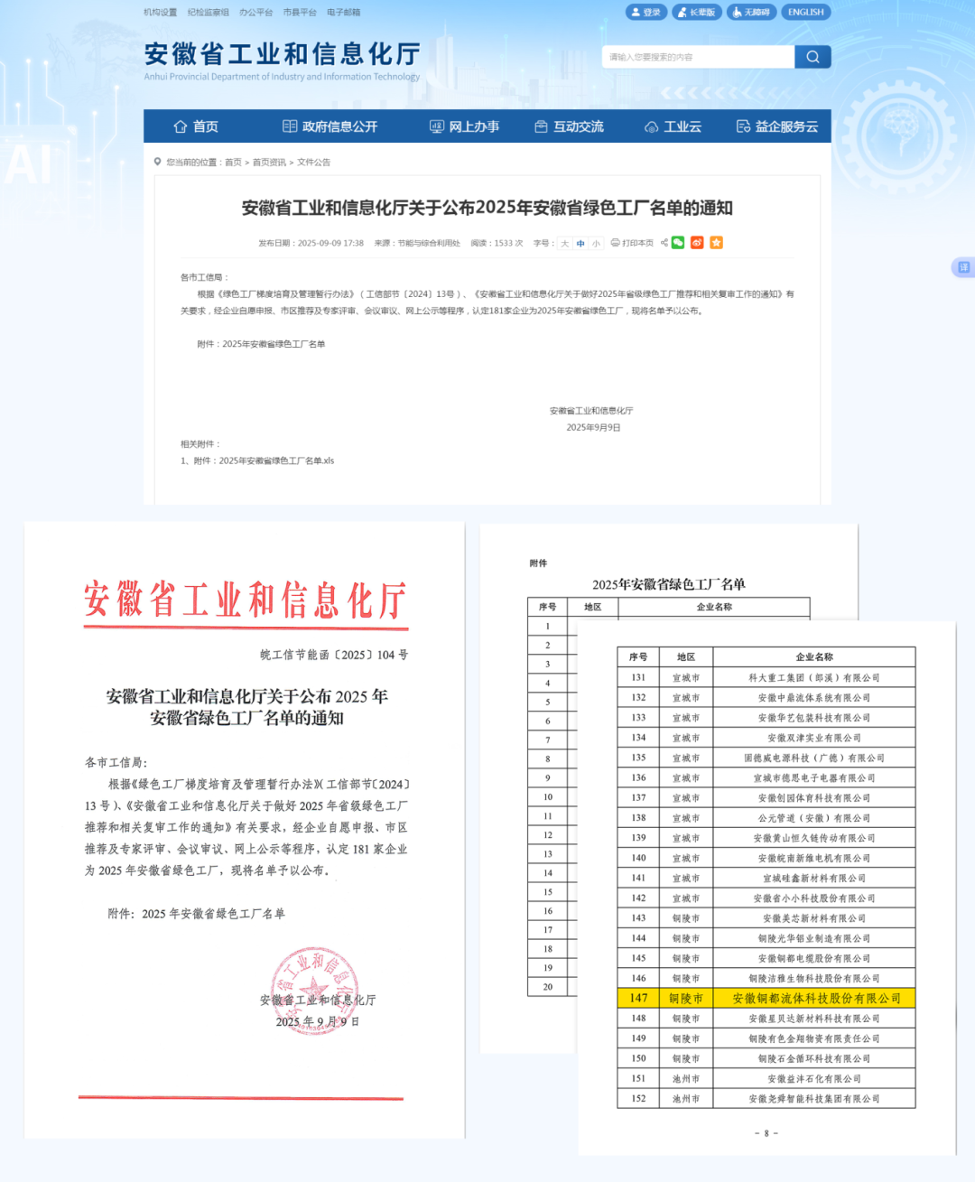 近日,安徽省工業(yè)和信息化廳正式公布2025年安徽省綠色工廠名單,銅都流體憑借低碳生產(chǎn)、綠色制造等方面的卓越表現(xiàn)成功入選。