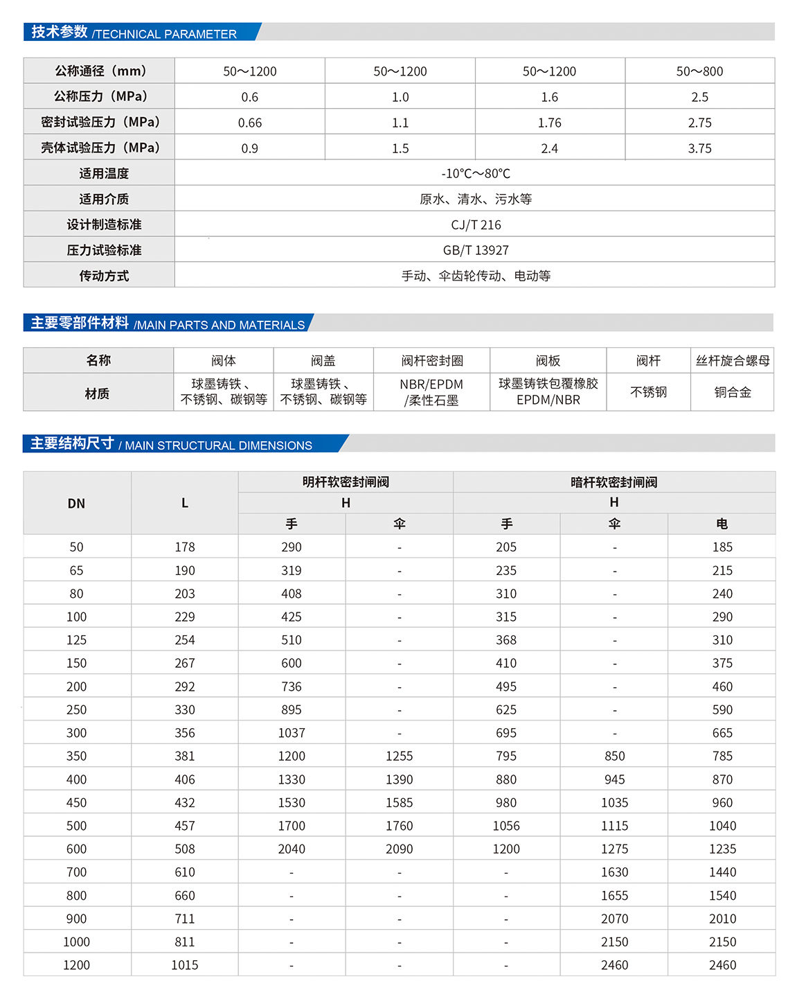 軟密封閘閥具有開(kāi)關(guān)輕巧、密封可靠、完全密封無(wú)世漏、彈性記憶佳、使用壽命長(zhǎng)等顯著優(yōu)點(diǎn),可廣泛應(yīng)用于給排水、石化、建筑、能源系統(tǒng)等流體管線上。
