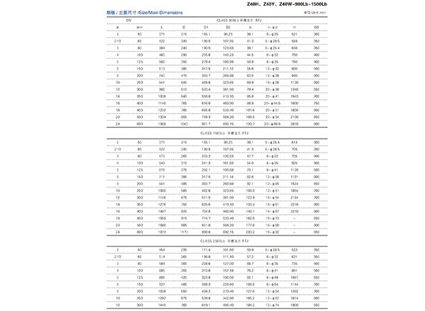 磅級閘閥Z40H、Z40Y、Z40W-900Lb~1500Lb